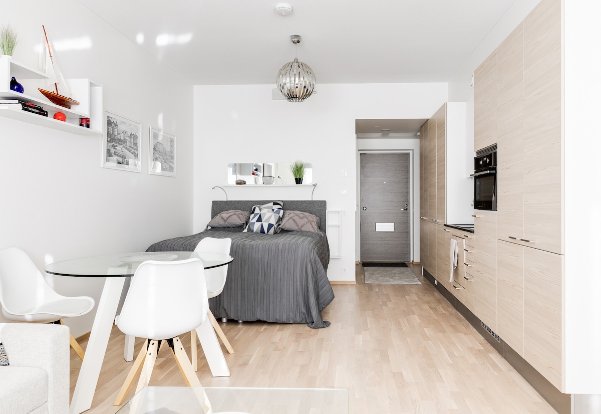 En el corazón de Tampere, junto a la estación de tren, una casa de gran altura en Luminary, un pequeño apartamento tranquilo con su propio balcón acristalado. La casa tiene dos restaurantes y tiendas de uso público. Los residentes y huéspedes tienen la oportunidad de aprovechar la terraza privada en la azotea de la casa y el vestíbulo con sus áreas de estar. Alojamiento tranquilo, fácil, limpio y cómodo en lugar de una habitación de hotel. La mejor ubicación posible.