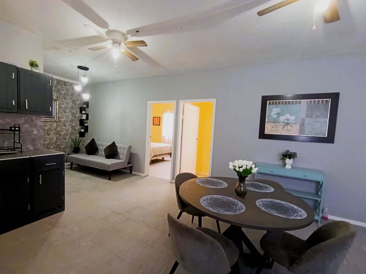 Keep it simple at this peaceful and centrally located place. Located Turning right off of HWY 80 or HWY 191 this studio apartment is ready for you to enjoy! Enjoy a custom-made kitchen with an electric stove top. A spacious bathroom with a walk-in shower, ready with Bluetooth speakers. In the living room enjoy an electric fireplace along with a wine-cooler built right into the kitchen bar. Let's not forget the washer and dryer are included for you to use during your stay! WiFi available 11/18
