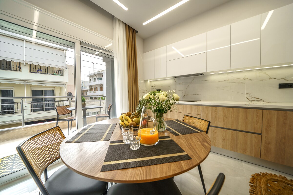 Vida de alta gama para nómadas digitales y amantes del bienestar en Heraclión, Creta. Con una ubicación ideal en un barrio tranquilo con fácil acceso a la carretera nacional E75 para excursiones de un día y días de playa. Cuenta con estacionamiento protegido gratuito. La construcción terminó en noviembre de 2022, ocupa 135 metros cuadrados en tres plantas y está construida con materiales de primera calidad y comodidad en mente. Si quieres alojarte en Heraclión por trabajo, vacaciones o simplemente necesitas una escapada de bienestar durante unas noches, este loft tiene algo para todos.