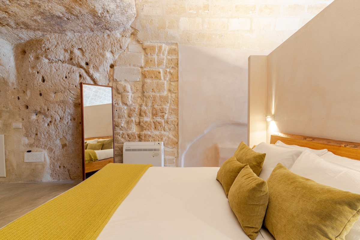 El alojamiento, completamente excavado en la suave arenisca calcárea del Sassi, se encuentra justo en el centro, en una posición estratégica pero al mismo tiempo privada, a pocos pasos de la Piazza del Sedile. Puedes alojarte en un entorno equipado con excelente comodidad y limpieza y disfrutar de total privacidad gracias también al espacio al aire libre a tu completa disposición. Tendrás la sensación de estar en una verdadera discreción, pero en el contexto de una naturaleza urbana milenaria y sostenible