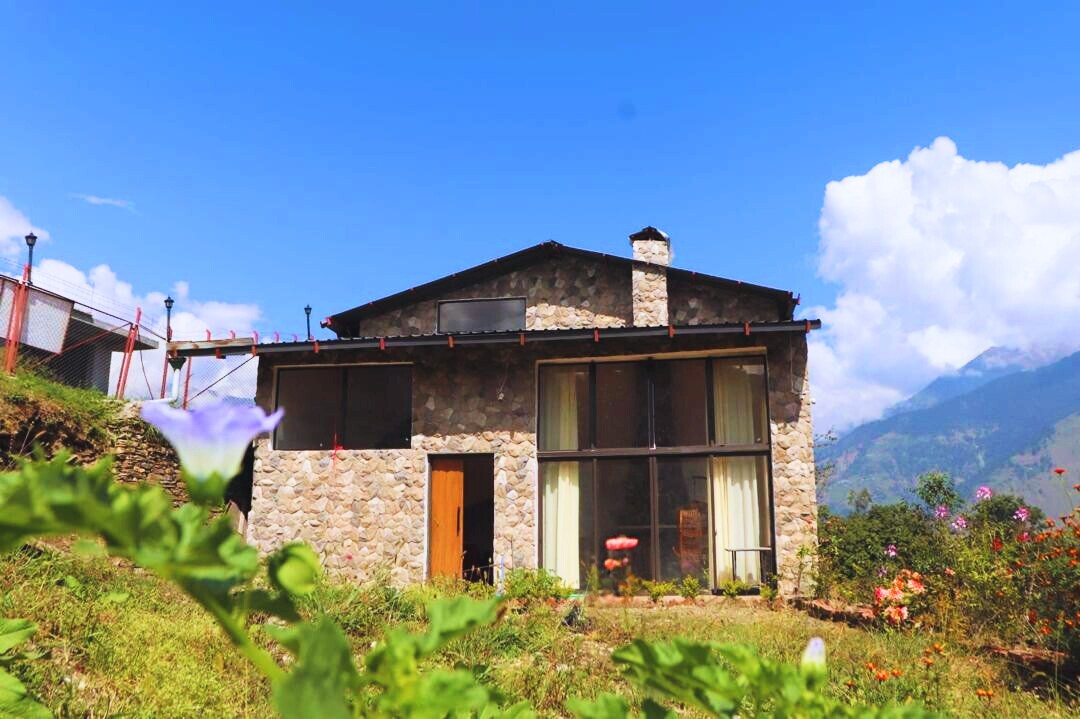 La cabaña está bendecida con la serena vista de 500 km de montañas del Himalaya cubiertas de nieve y disfruta de comida casera cocinada por la propietaria, Ma Saraswati, famosa por su risa y hospitalidad. El lugar está rodeado de algunas de las mejores hierbas, verduras orgánicas y frutas. Dos perros Jerry y Kaali cuidan bien de las gallinas y palomas del jardín. La presencia se suma a la tranquilidad del lugar.
