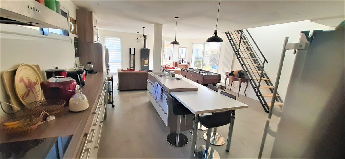 NOS hemos centrado en la decoración, para que, a su llegada, quiera disfrutar del salón o de la terraza. Que sus noches de verano sean agradables tanto en el exterior como en el interior . La casa puede alojar hasta 8 personas, gracias a sus dos sillones convertibles, uno en cada habitación. Situado a 3 km del puerto, pasará por el centro acuático, Park Aventure y el estanque de Val St Martin justo antes de llegar a su CASA...