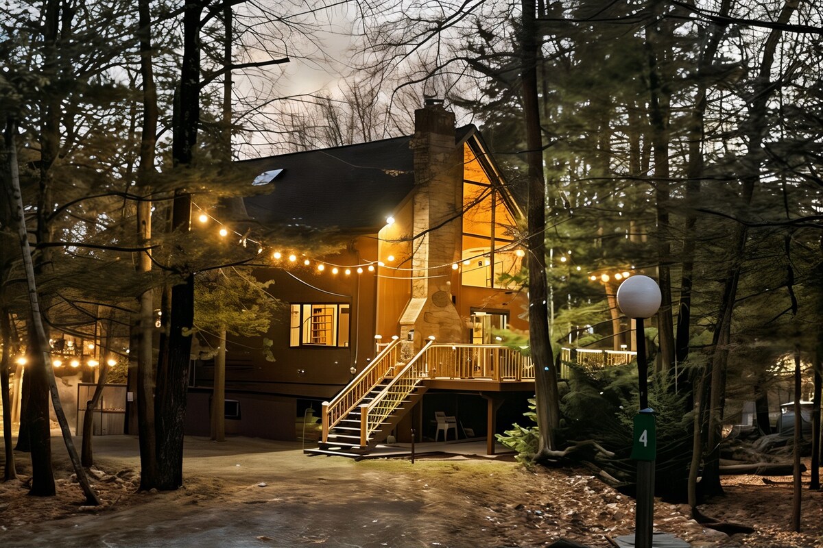 Modern cabin for 14 with 5 bedrooms, 7 beds, Loft, & a 2nd game room. Relax in the indoor cedar sauna, soak in the 8-person hot tub, or gather around the large fire pit. Enjoy two spacious decks with string lights, plus endless fun with a pool table, arcade games, foosball, and game tower. Fully equipped kitchen, dining for 14, and multiple lounges. Minutes from Big Boulder/Jack Frost Ski Areas, Lake Harmony beach/tennis courts, trails, Pocono Raceway, Kalahari Water Park, & historic Jim Thorpe.