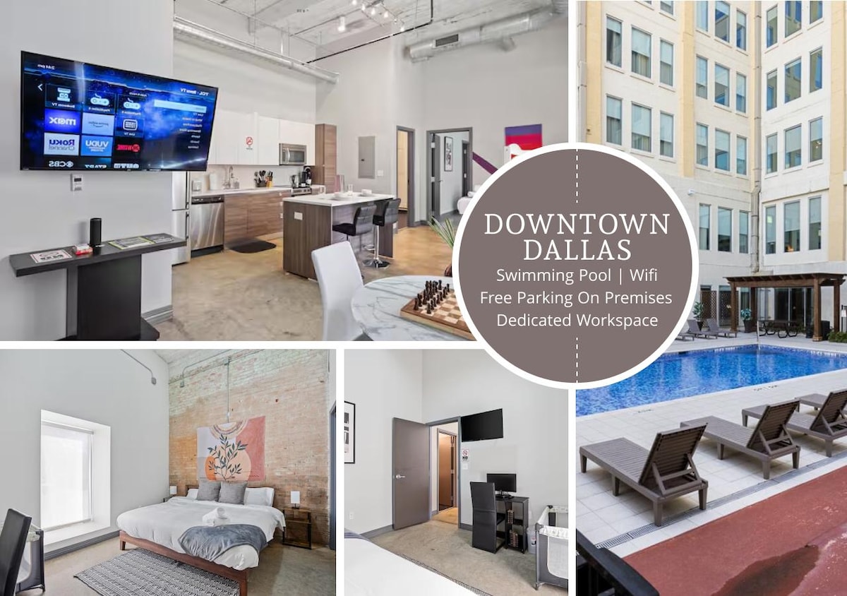 ¡🏡 Bienvenido a tu elegante refugio en el corazón de Dallas! Nuestro moderno loft combina un diseño elegante con una comodidad inmejorable, a solo unos pasos del vibrante pulso de la ciudad.🏡 Ubicado en una bulliciosa zona céntrica, este loft ofrece un acceso inigualable a una gran cantidad de servicios. El Centro de Convenciones Kay Bailey Hutchison está a solo 5 minutos a pie, por lo que es perfecto para viajeros de negocios o asistentes a eventos. ¡🌟Reserva tu estancia con nosotros hoy y disfruta de lo mejor de la hospitalidad de Dallas!🌟