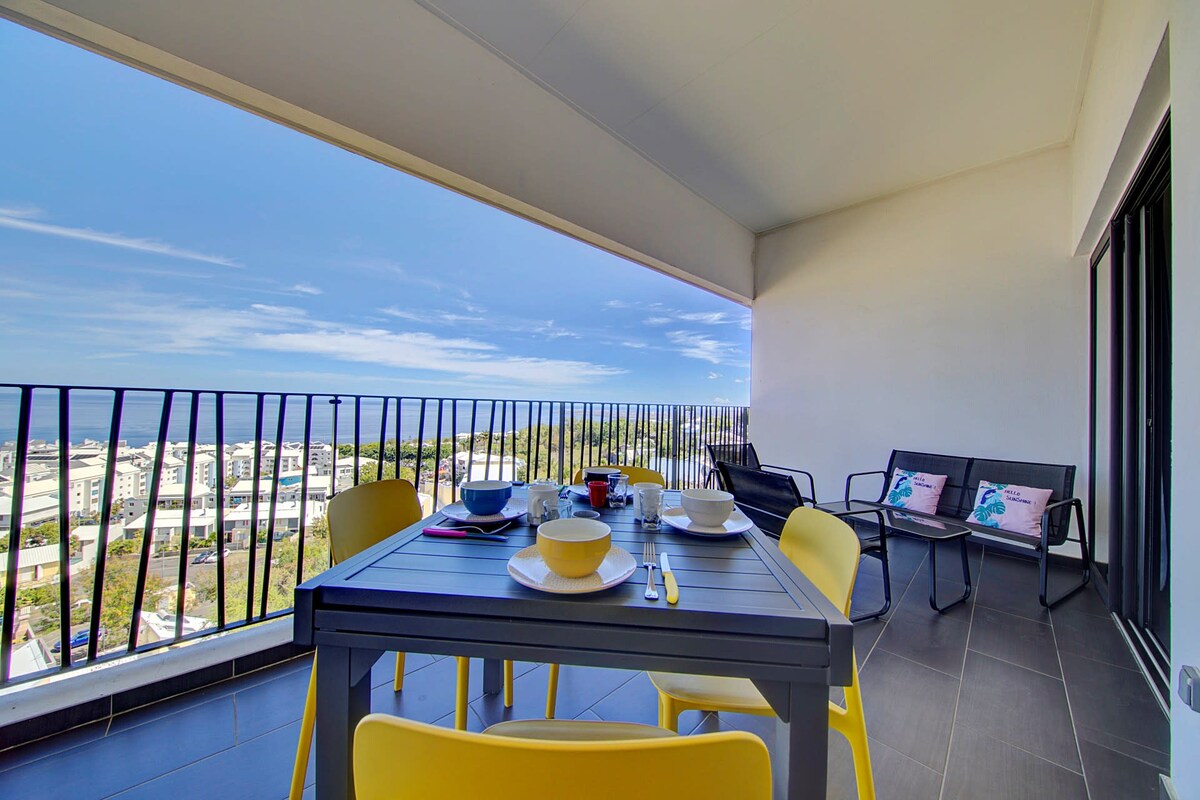 Todas las comodidades, con hermosos volúmenes ,vistas directas y panorámicas al mar. Desde la terraza contemplarás las puestas de sol, Cap La Houssaye y en temporada los saltos de las ballenas. Idealmente situado en Plateau guiillou, en una residencia reciente y segura con estacionamiento privado, llegará a la carretera de los Tamarins en 2 minutos mientras está cerca a pie de las tiendas (panadería, Super U, farmacia, médicos, bancos).