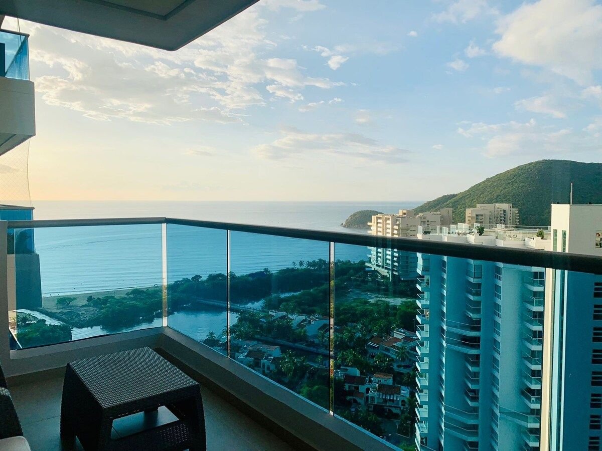 🌊 Gran apartamento piso 14 con Balcón en Santa Marta ideal para parejas, familia o amigos. Encontrarás: 🛏️ 2 habitaciones con camas Queen y doble. 🍳 Cocina equipada para preparar lo que necesites. 🌅 Balcones privados con hermosa vista frontal al mar y brisa natural. 🏖️ Ubicación a pocos pasos de la playa. 🏊 Piscina. 🏋️ Gimnasio. 🛝Zona de juego para niños. 👩💻Coworking. 🛁 Jacuzzis. 🌆 Rooftop. ♨️Zona BBQ. 🍽️ Restaurante. 🔐 Ambiente seguro y exclusivo.