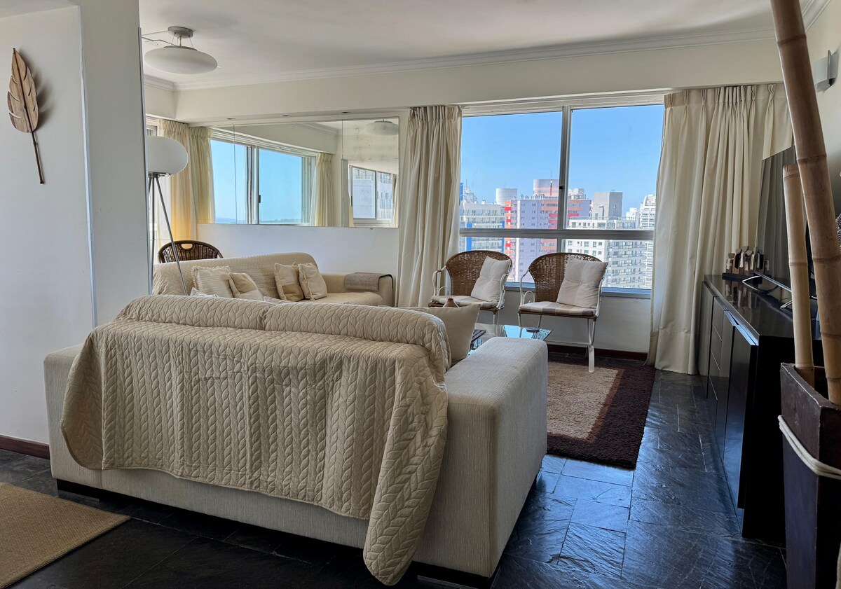 Monoambiente en Torre de gran categoría, a pasos del punta shopping y pocas cuadras de la playa. Muy cómodo y funcional, equipado completamente, piso alto, vista a isla de gorriti y playa mansa. Aire acondicionado, servicio de mucama diario y portería 24 hrs Se proporciona jabon, papel higienico, toallas y sabanas. TV con Directv. Wifi de alta velocidad.