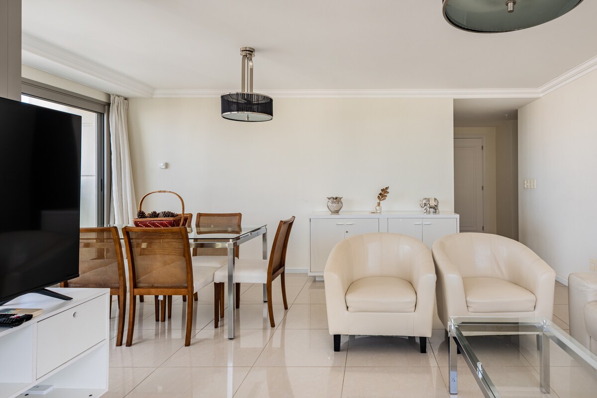 En el corazón de la Península en Edificio Kennedy Piso 11. Grandes ventanales doble vidrio y amplias vistas al mar. Con mucha luz y muy confort . Excelente ubicación próximo a la Rambla, al Puerto, Playa Los Ingleses y Playa El Emir, a las mejores tiendas, los restaurantes y cafés. Muy confortable y equipado para todo el año Aire Acondic FríoCalor. Paneles de calefacción Ropa blanca de calidad Recepción 24 hs WI FI TV SMART HD 55 “ NETFLIX Punta Cable Cochera Todo listo al llegar