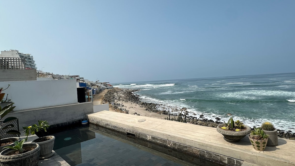You will feel in a cruise just for you! All areas are for exclusive guest use (no sharing with others) 3 rooms, kitchen, dining room, leaving, terrace, wifi, cable, garden, pool, parking for 2 cars 40 meters to the beach Best spot for surfing Caballeros, Señoritas (direct view) or just chill and relax with the sea view Families and group of friends are welcome. The house have plenty of space for you to have fun, listen your music and enjoy one of the best views in Lima with total privacy