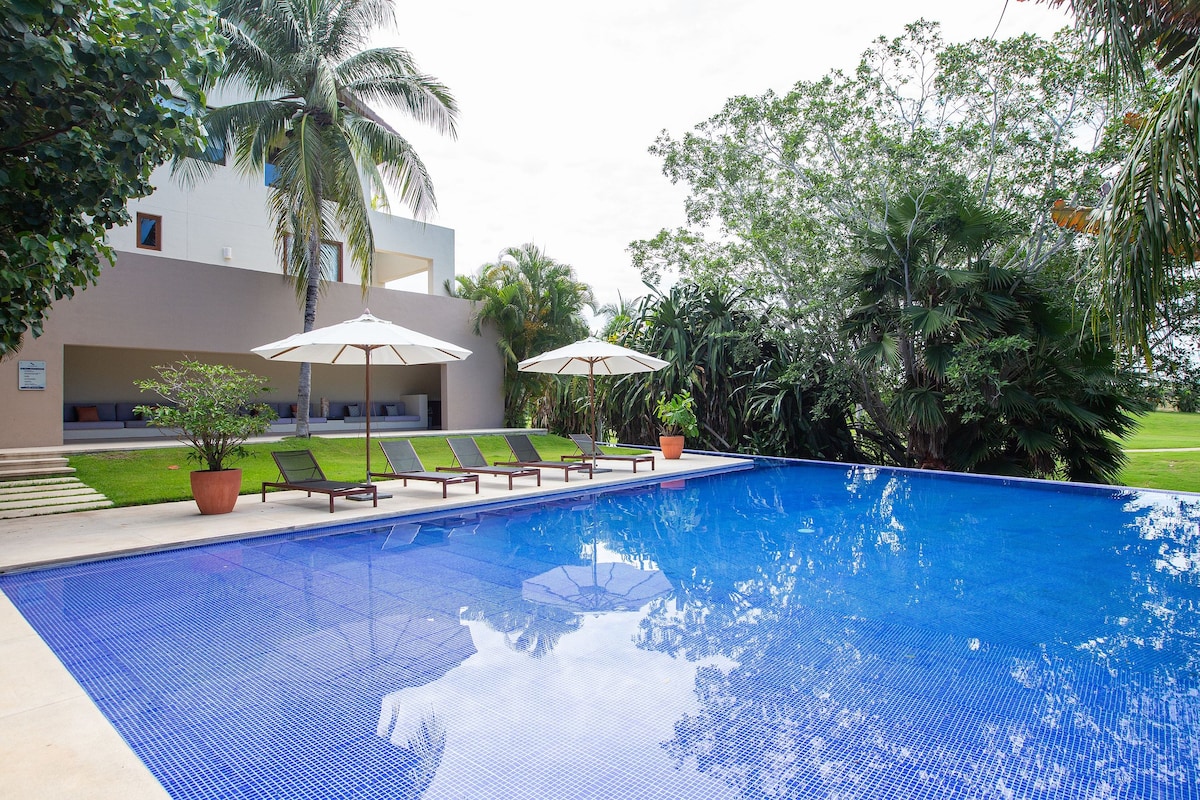 Echa una buena siesta en este refugio en la ladera de una colina con increíbles vistas al mar y una amplia extensión de selva. Ideal para una escapada romántica en un entorno excepcional, cerca del centro de la ciudad pero a un mundo de distancia del bullicio y el ruido. Tu propia casa arquitectónica con el mejor internet de la ciudad (fibra), aire acondicionado en toda la casa y piscina infinita climatizada. Ahh... Ideal para teletrabajadores y viajeros que buscan refrescarse dentro de la exuberante selva tropical. Ofrecemos servicio de limpieza para que puedas disfrutar de más tiempo en la piscina. :)