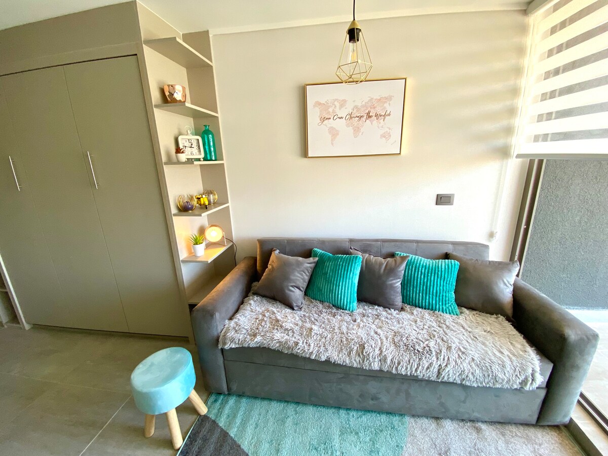 Lindo departamento con terraza vista al mar, un dormitorio un baño, completamente amoblado y equipado. Cuenta con wifi y cable para la tv smart de 42 pulgadas. Excelente iluminación. Edificio cuenta con consejería 24 hrs, 2 piscinas: exterior y temperada, gimnasio, sauna, quincho, lavandería y estacionamiento. Se encuentra cerca de supermercados, bencineras, farmacias. Ubicado a 5 minutos de la playa en auto, y 20 minutos a pie. Se ofrece descuento del 10% a estadías mayores a 7 días.
