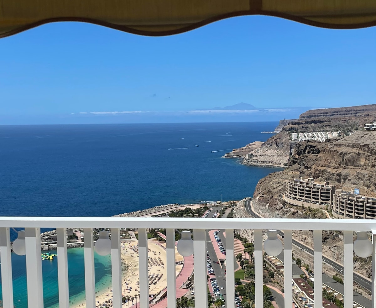 Te va a encantar este elegante apartamento con magnificas vistas al Océano Atlántico, en Playa del Cura a 10 km de Puerto de Mogán. Pisicna CLIMATIZADA todo el año - Aire acondicionado en salón y dormitorio. 1 Dormitorio. Salón, cocina, baño y espléndida terraza privada de 18 m2 con toldo motorizado abatible. ENTRADA --> 15:00 hasta 20:00. SALIDA --> 11:00. Máx ocupación: dos adultos + 1 niño ( 3 personas)