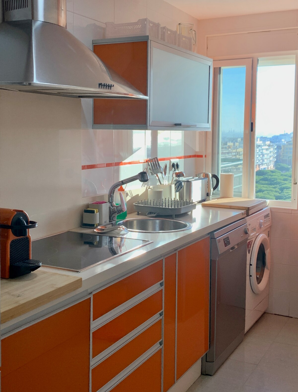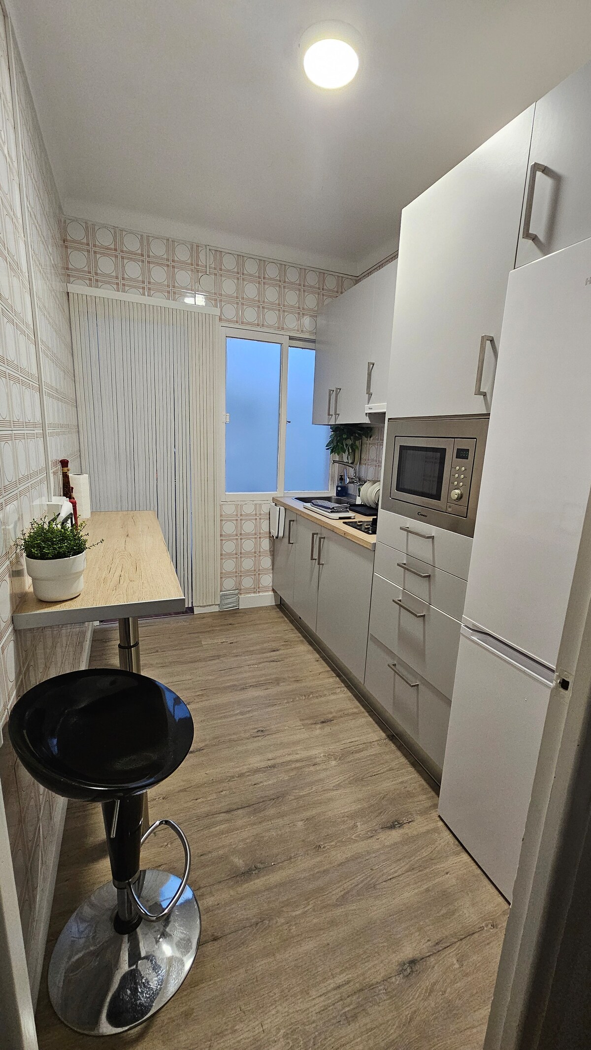 EL apartamento es amplio 90 M y GARAJE DE 23 METROS con puerta independiente . AIRE ACONDICIONADO EN TODOS LAS HABITACIONES . BAÑERA GRANDE .Balcón con sillas y mesa es un 2° muy equipado para estar como en casa , Sabanas y toallas de baño y de mano , radiadores Calor . menaje playa 4 sillas playa, sombrilla Grande, nevera . Equipado para niños bajo petición Trona, parque cuna con colchón , vigilancia de sonido , platos , cubiertos, ETC .El barrio tranquilo, con zonas verdes.
