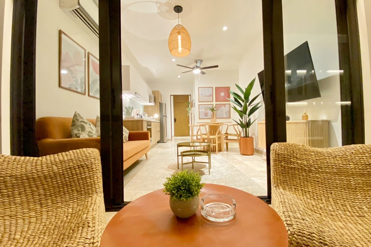 ¡Your oasis in Playa del Carmen! Enjoy this cozy and modern apartment, fully furnished and equipped. Just 10 minutes from the lively 5th Avenue and stunning beaches. With high-speed WiFi, you'll feel at home while exploring the area. Located in a beautiful and peaceful residential neighborhood, it's the perfect starting point for your adventures. Ground floor unit with direct access to green areas, a pool, and BBQ grills. The perfect getaway awaits!