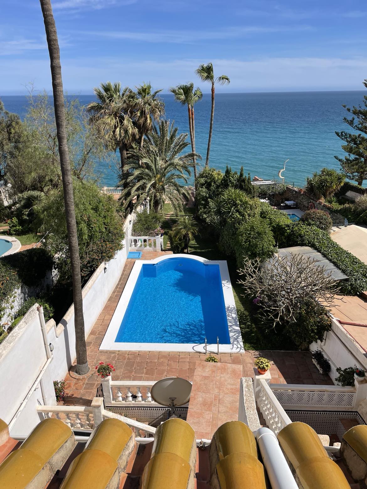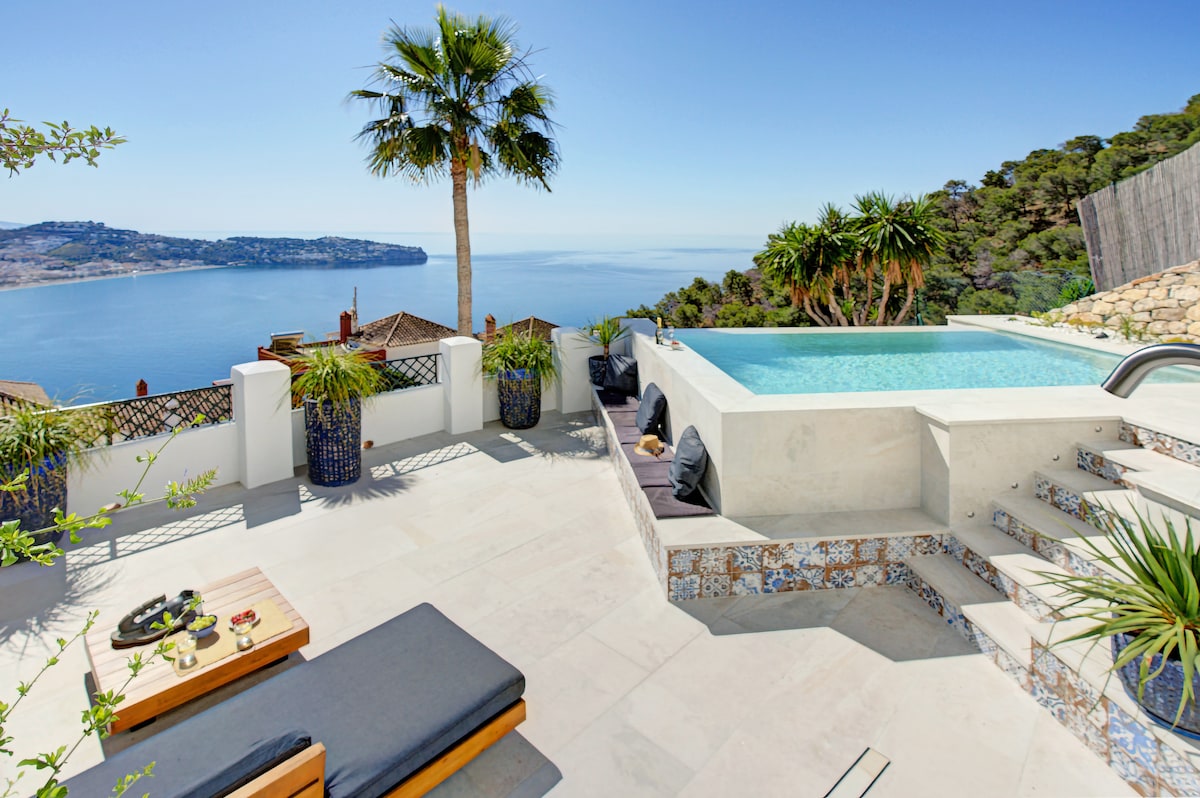 Villa Calypso. Experience the quintessential coastal getaway in this luminous Andalusian-style villa, where every room is a window to the breathtaking 180º vistas of the Mediterranean. Enjoy sunshine all day! The 3-bedroom house has a private salt water pool with optional heating (please request in advance) and terraces with views all around. Enjoy the fully equipped kitchen, bright living area and stylish furniture. With garage and high-speed wifi. Enjoy this beachfront airbnb year-round! 🏝️