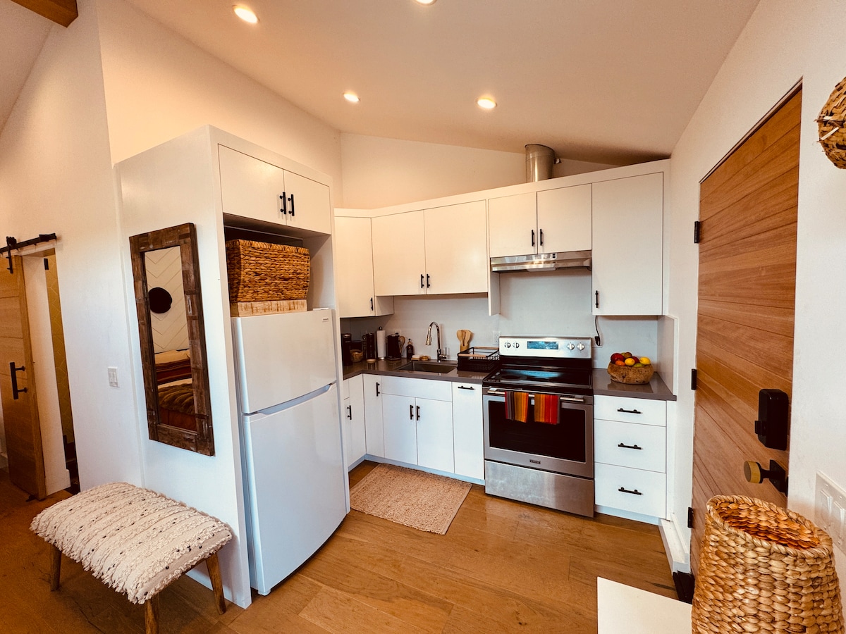 Esta moderna casa de campo de 500 pies cuadrados recién reformada, ubicada en un barrio seguro y transitable, es la escapada ideal para dos adultos. Con una cocina completa y un baño privado, este espacio luminoso y brillante tiene encimeras de cuarzo, suelos de madera, baño de baldosas de mármol, electrodomésticos y muebles nuevos. Perfecta para el trabajador remoto o viajero que visita, estamos ubicados a solo una milla del corazón de la moderna Culver City, a 6 millas de Santa Mónica y a 15 minutos de LAX.