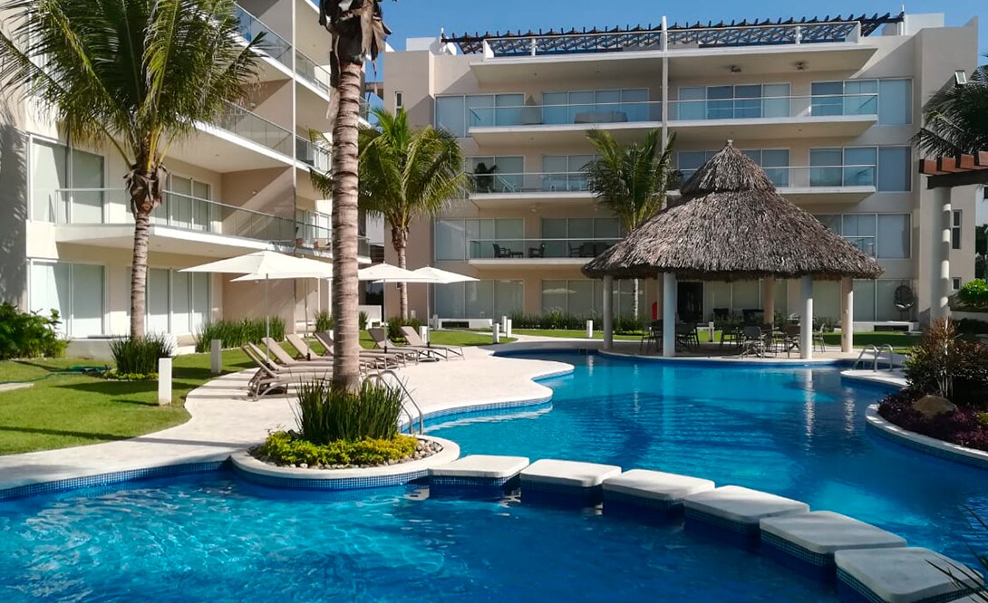 Apartamento de lujo de 1 habitación mas sofa cama.Capacidad para 2 a 5 personas, es importante colocar el número de personas ya que se envía un correo a recepción para el acceso, el condominio tiene todas las comodidades: aire acondicionado, y cocina equipada piscina, playa y terrazas. La hora de entrada para registrarse es de 1pm a 9:30pm,y salida pueden ser flexibles siempre y cuando se coordine con el propietario.