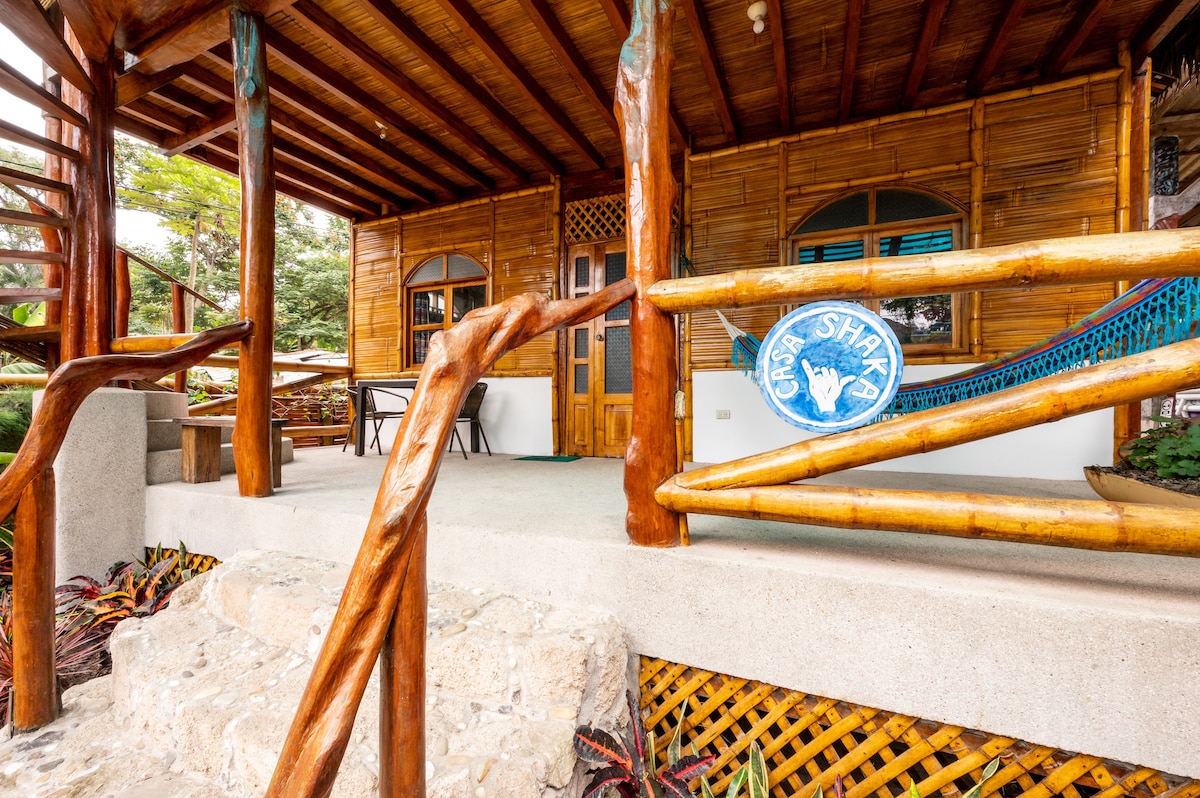 Steps from the surf, this bright and breezy ground-floor private suite is perfect for couples, friends, families, solo travelers, or digital nomads looking to balance work, waves, and rest. The main-floor suite features handcrafted wood details and large windows that fill the room with natural light. While the patio invites you to relax in the hammock, enjoy a morning coffee or deep dive into that book. Ideal for guests who want more space and privacy while still enjoying hotel-style services.