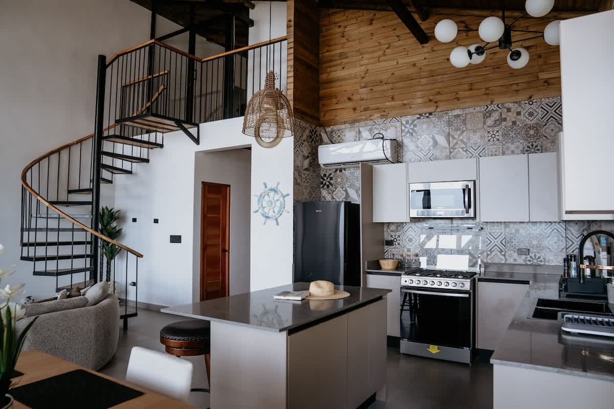 El ático Blue Vista, ubicado en la nueva urbanización de Blue Venao, está lleno de todo lo necesario para una escapada cómoda y una experiencia inolvidable en Playa Venao. Disfruta de la escena panorámica del océano desde nuestro balcón, con vistas a toda la bahía, observa las puestas de sol más increíbles sobre el océano Pacífico, experimenta el mejor club de playa de Venao con una piscina infinita y bares de alta gama, y fácilmente a pie de todos los excelentes bares y restaurantes a una cuadra del ático.