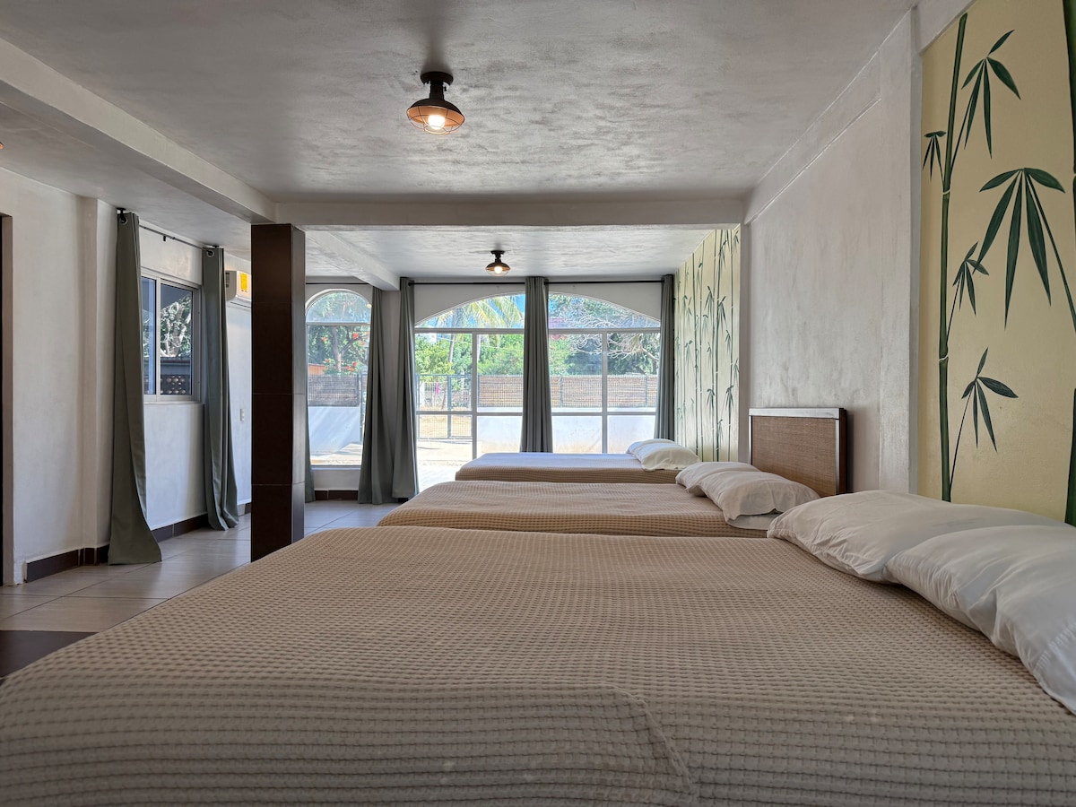 Esta suite junto a la piscina cuenta con una cama tamaño queen y baño privado. Tiene acceso compartido a 2 cocinas totalmente equipadas, una ubicada junto a la piscina y la otra en el tercer piso del hotel. Proporcionamos lo básico: agua potable, jabón de manos, papel higiénico, toallas de baño frescas y toallas de playa. Extras: plancha, nevera de playa, sombrilla y mucho más. Aire acondicionado disponible por un cargo adicional. Internet Starlink. ¡Mira mi código QR para acceder a nuestra guía! Encontrarás mucha información sobre Puerto Escondido y nuestra zona.