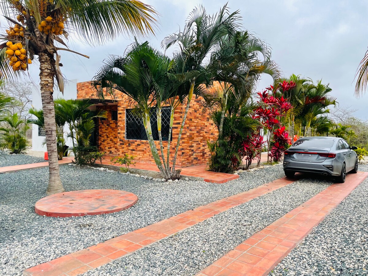FRENTE AL MAR. Casa playera completa con acceso al mar en urbanización privada; guardianía 24/7; cuenta con tres habitaciones, una con baño privado, en total dos baños completos, todas las habitaciones cuentan con aire acondicionado, cocina, comedor, sala exterior, espacio de garaje para dos coches; la urbanización cuenta con espacios comunes como: cancha, parque con juegos infantiles, corredores; te garantizamos SEGURIDAD y PRIVACIDAD, te divertirás. gracias por reservar😊
