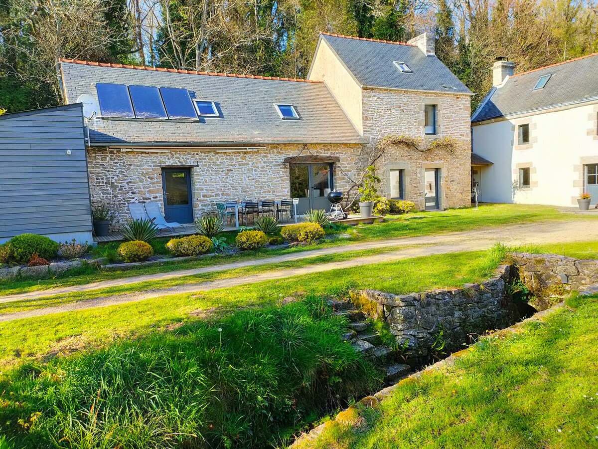Esta encantadora casa de piedra "Ty-Laë" fue originalmente el hogar de una granja. Se encuentra en un entorno verde y tranquilo en el campo a las puertas de Quimper y no muy lejos del mar. Tiene una ubicación ideal para irradiar en el sur de Finistère. El jardín cerrado, plantado y con flores de 1700 m2, participa en el ambiente relajante del lugar. La propiedad se encuentra a 15 minutos de playas de arena fina, lugares de surf, lugares famosos de cultura y patrimonio, sitios naturales, muelle para el archipiélago de Glénans.