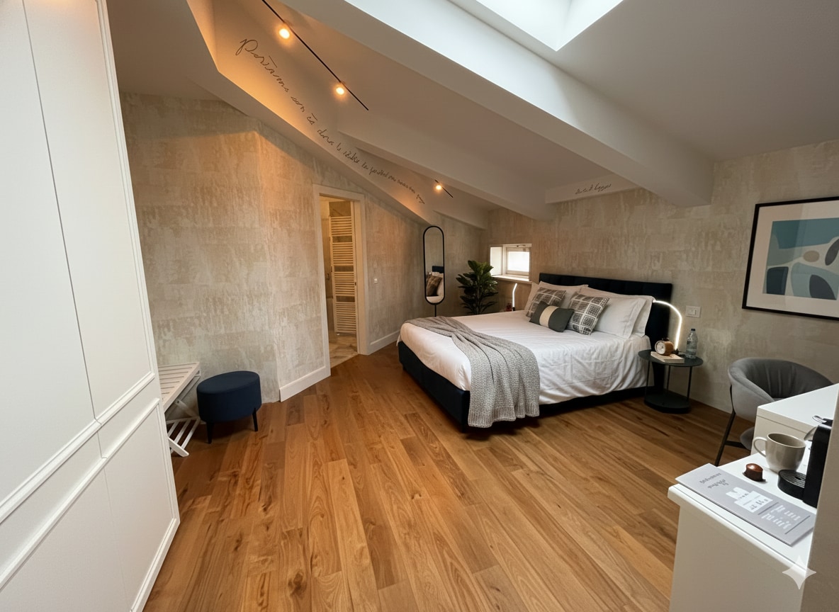 A 20 m² Standard Room located inside a boutique hotel with elevator access. It features a double bed (twin setup available on request), a private bathroom with shower, satellite TV, free Wi-Fi, and a minibar fridge. Your stay includes a linen change service and dedicated staff assistance. The property is located right in the city centre, just steps away from shopping streets, local restaurants, historic landmarks, and museums.
