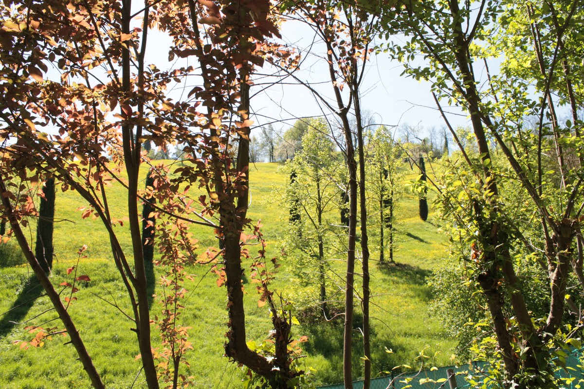 Ven a relajarte a la habitación en las colinas de Parma, en Santa Maria del Piano, a poca distancia de las fábricas de jamón de Langhirano y las queserías de Traversetolo. Ven a sumergirte en el sabor y la relajación. Tendrás a tu disposición un piso de mi casa con habitación y baño privado. No hay cocina, pero ofrezco un pequeño desayuno con café, té y tostadas. Se utiliza el «self-check-in».