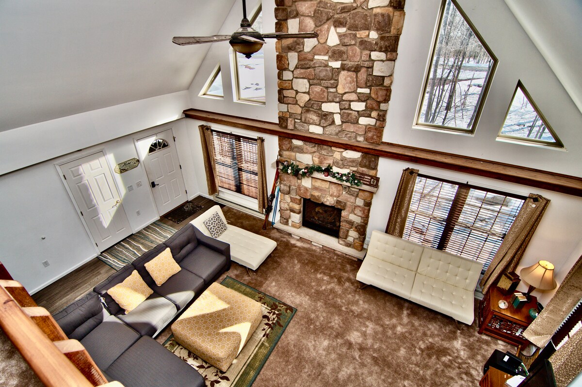 Beautiful luxe townhouse for up to 8 guests, with 2 bedrooms, 2.5 baths, a full kitchen, office, loft, and a deck with a grill overlooking parklike shared grounds. Bright interiors, skylights, mountain views, and a marble master shower will take your breath away. Steps from Shawnee Mountain and a short drive to Shawnee Inn & Golf, Bushkill Falls, the Delaware Water Gap, outlets, and dining. Includes breakfast, snacks, and quality body care—ideal for families, couples, or groups. Decor available.