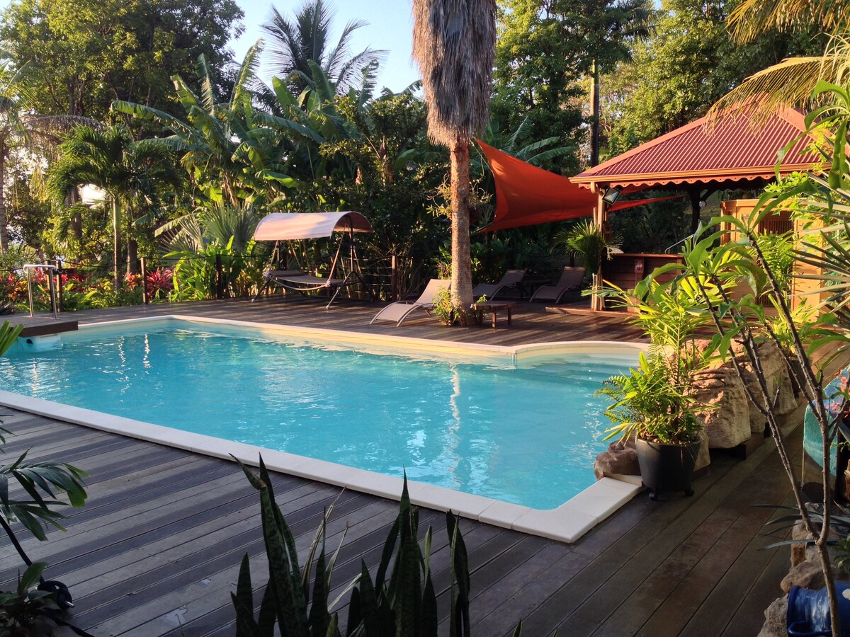 Bungalow totalmente equipado en una magnífica propiedad en las llanuras de Pointe-Noire. En 3 hectáreas de vegetación con más de un centenar de árboles frutales en el corazón del Parque Nacional de Guadalupe. Ideal para los amantes de la naturaleza. También están Ti Paradis, Ti Coco, Ti Kaz la o Ti Cacao que puede descubrir en el Dominio.