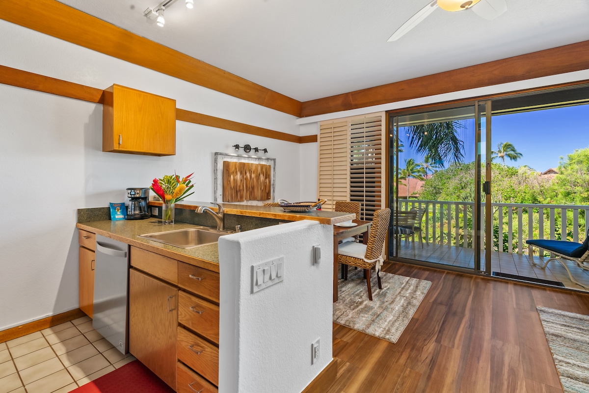 Ground-floor condo in Building 26 at Kiahuna Plantation with partial ocean views and a serene garden lanai. Just a 2-minute walk to Kiahuna Beach and 10 minutes to Poipu Beach. Features A/C in the living room and bedroom, glass-free jalousie windows for Kauai’s trade winds, beach gear, parking, and full access to the Poipu Athletic Club, including pool and fitness amenities.