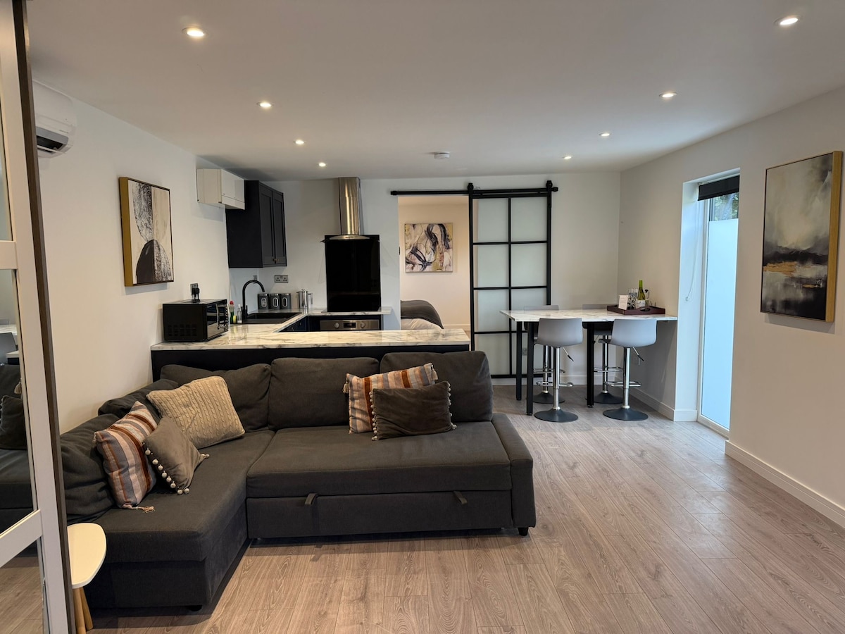 This modern (new refurbished for 2026) apartment is 200 metres from award-winning beaches & offers luxurious accommodation. It is ideal for couples. Air conditioning throughout, Smart lighting, Smart TV, fast free WiFi & private outdoor space. Walking distance to the stunning beaches, local shops, restaurants and bars in Southbourne. 5 min drive from Bournemouth University, 10 min drive from Bournemouth town centre and a 15 min walk from AFCB football stadium. Secure free, off-road parking.