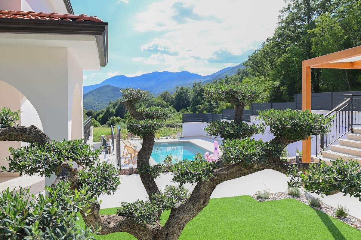 La Villa Verde Blu cuenta con piscina climatizada al aire libre, barbacoa y terraza con vistas panorámicas al parque natural Učka. Villa Verde Blu ofrece un alojamiento moderno junto con una sala de juegos rústica equipada con una mesa de billar. Los huéspedes podrán disfrutar de 3 televisores de pantalla plana con canales disponibles de todos los países, aire acondicionado y chimenea, así como aparcamiento gratuito y wifi. Villa Verde Blu definitivamente te conquistará con su encanto. Aquí puedes decir libremente: ¡Vacaciones de bienvenida, adiós!