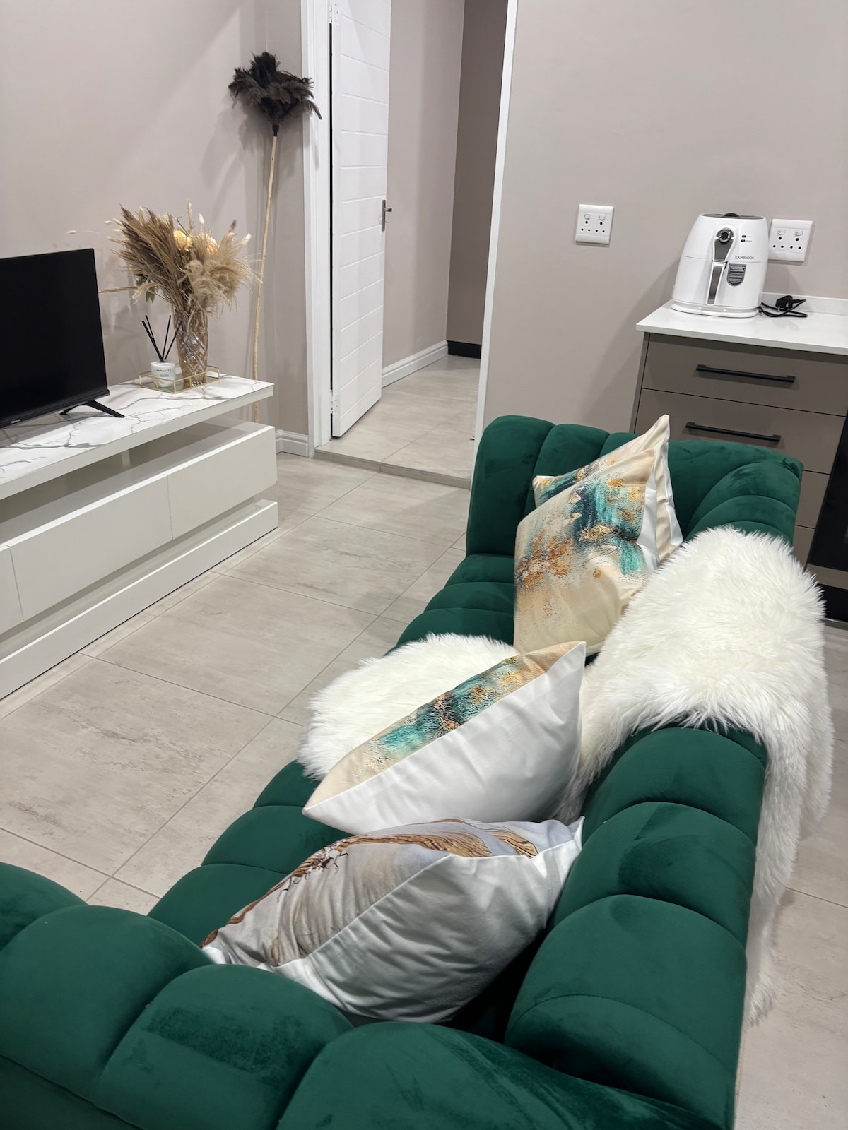 Departamento de 2 dormitorios (dos camas individuales en cada habitación), living y cocina. Entrada privada y jardín privado. Baño con ducha y bañera. Toallas y mantas de repuesto. La cocina está equipada con utensilios independientes, estufa, nevera con congelador, lavadora, microondas y estación de café. Televisión con Netflix y wifi gratuito disponible. Acceso a la piscina comunitaria y a la zona braai. Estacionamiento cerrado con cámaras de seguridad. Ubicado cerca de un centro comercial, hospitales, escuelas, estadio y reserva natural.