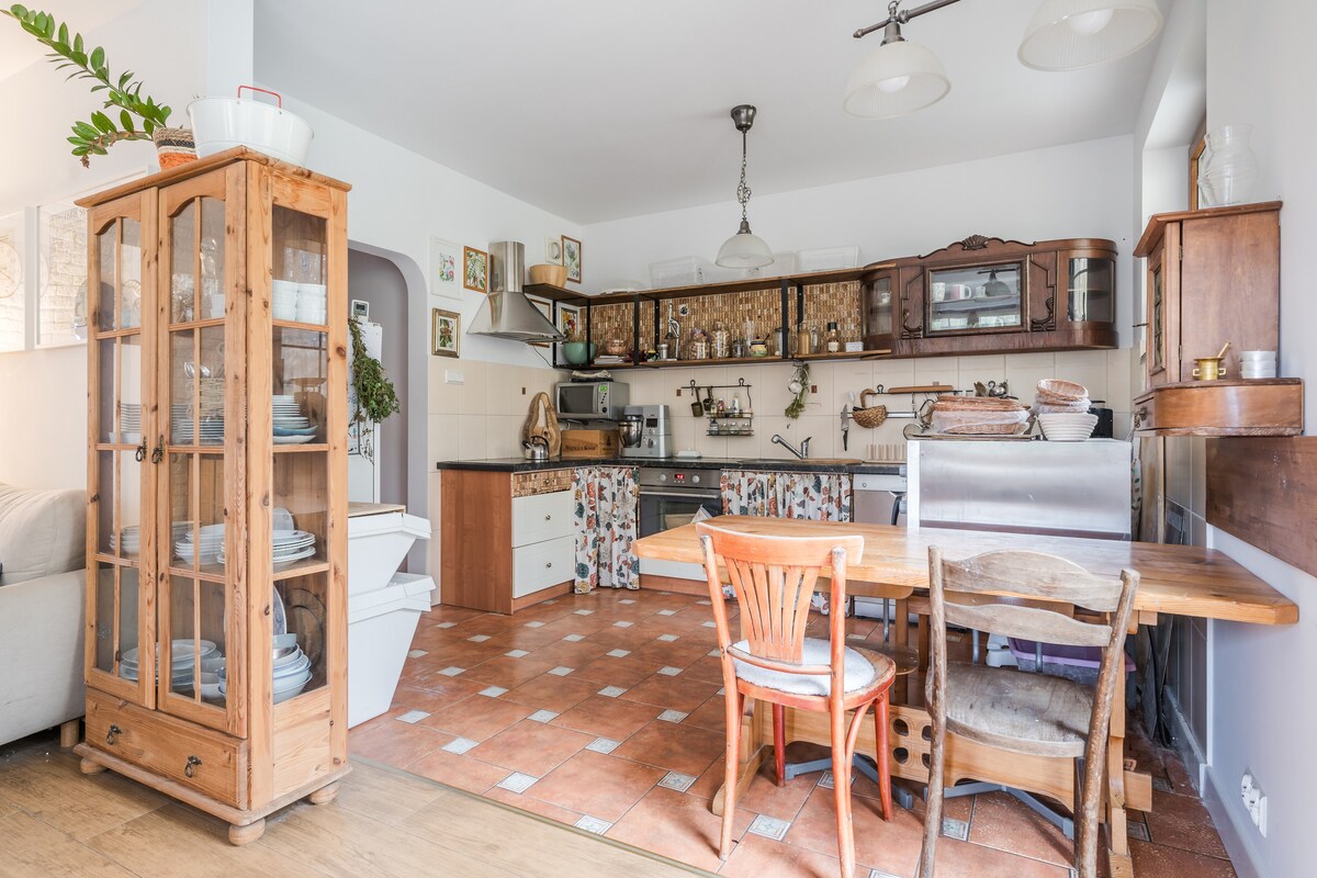 Perfecto para una escapada familiar. Un apartamento en un lugar encantador bajo el bosque. Ubicación: a 15 minutos del centro de Gdansk y la playa. Servicios: un apartamento entero con acceso a una terraza, un bosque vallado, una fogata, una casa del árbol, una tirolina y un columpio en el bosque. Comida casera: en el lugar, podés pedir la cena, productos para el desayuno (conservas caseras y pan de masa madre fresco). Redes sociales de Instagram: koniuszewskagotuje y pod lasem