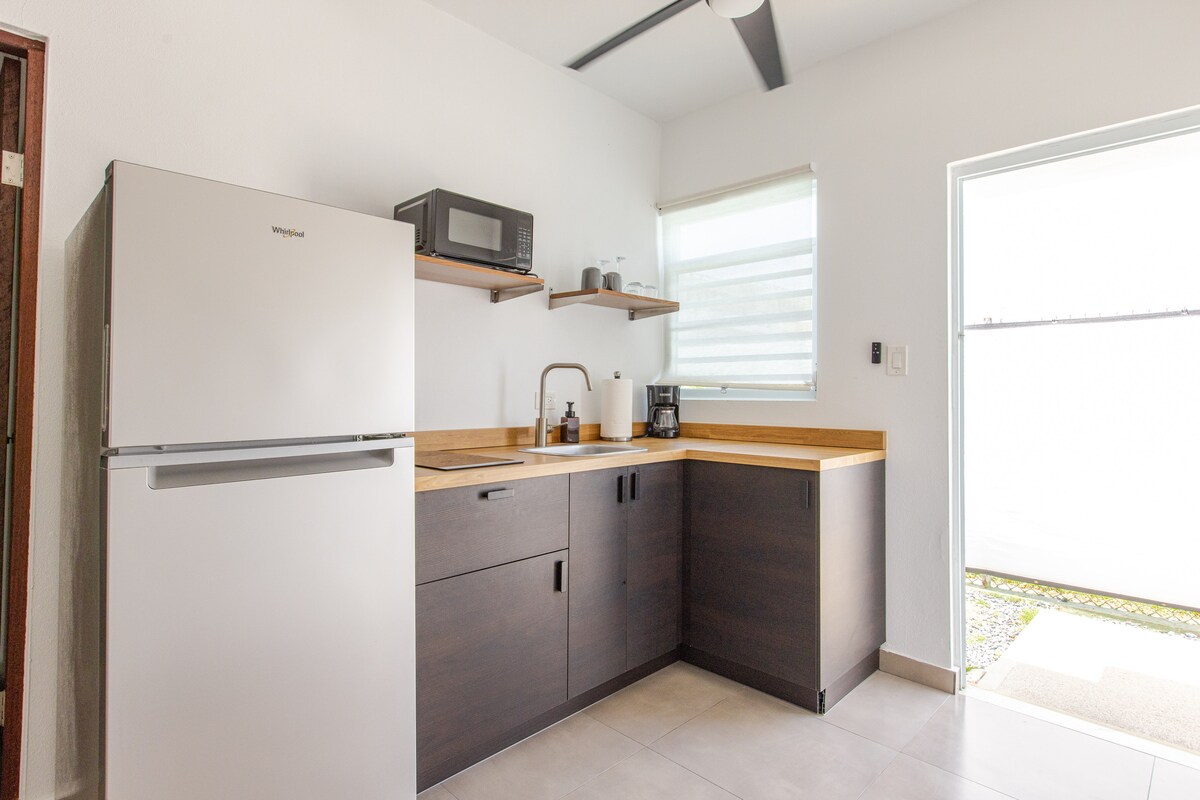 Recharge in your cozy en suite (430sqft/40sqm) in the southern capital. This modern minimalist residence is located in a safe, convenient and central neighborhood in the geographic center of the city. Look for green quakers, butterflies, or our neighborhood colorful roosters. This immaculate en suite is set off by itself and has a comfortable queen-size bed, working desk, a modern kitchen and a spacious modern bathroom with beautiful exposed concrete.