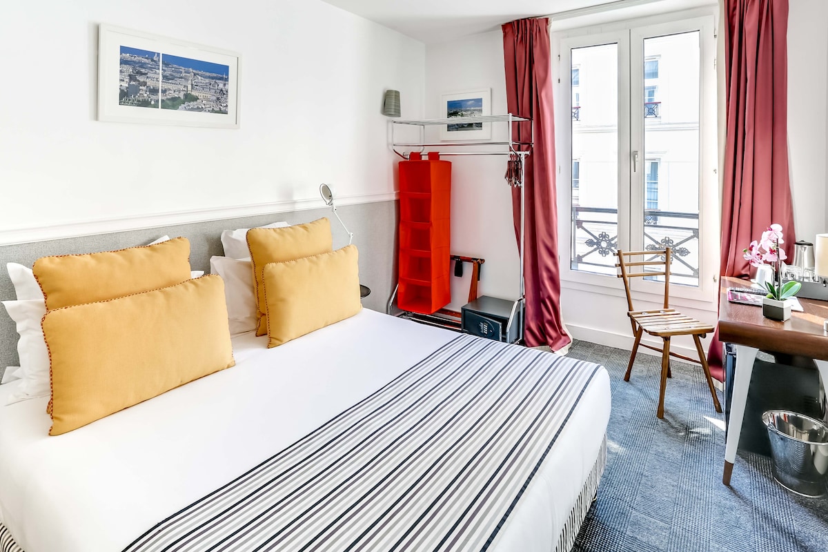 Habitación Doble con baño privado en el hotel Monterosa***, un hotel boutique de 3 estrellas perteneciente al grupo Astotel e idealmente situado en el centro del distrito 9 de París, cerca de Montmartre, los grandes almacenes, la Ópera Garnier y del transporte público. Recepción abierta 24 horas. Puedes dejar gratuitamente el equipaje durante todo el día de llegada y de salida.
