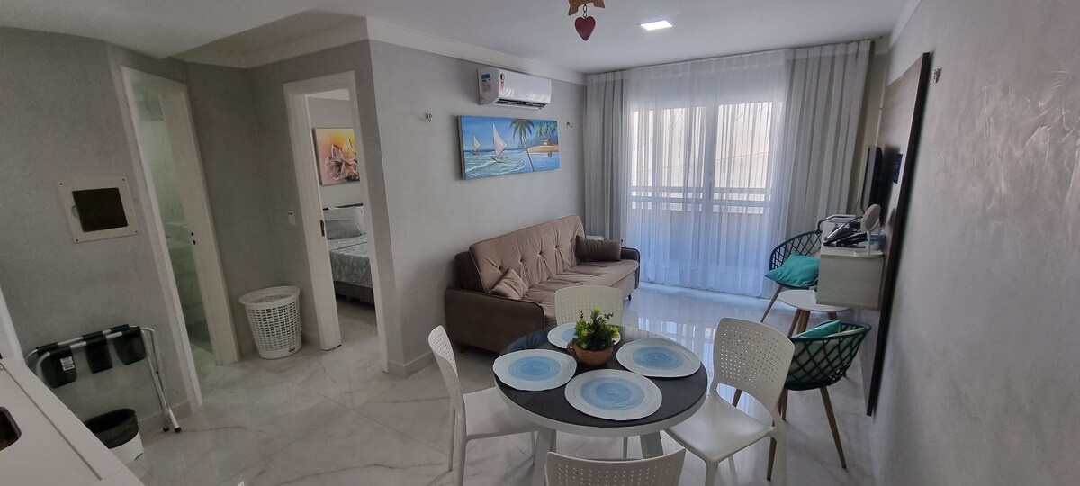 FLAT recién reformado de administración privada en espacio de Hotel en Ponta Negra, cerca de los principales bares, panaderías, ferias de artesanía, playa... ¡Se puede hacer de todo a pie! Comodidad, practicidad y confort. Disponemos de ropa de cama de alta calidad para hacer la estancia aún más agradable e Internet individual en la habitación