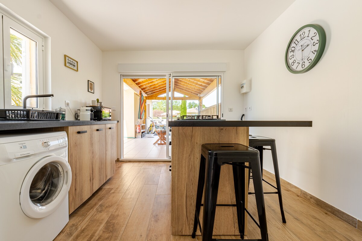 Casa moderna con todas las comodidades cerca de Mimizan – 6 personas Bienvenido a nuestra casa nueva y totalmente equipada situada en Pontenx-les-Forges, en el corazón de las Landas, a solo 20 minutos del océano y cerca de los lagos de Aureilhan y Parentis. Perfecta para unas vacaciones en familia o con amigos, esta casa de una sola planta tiene capacidad para 6 personas.