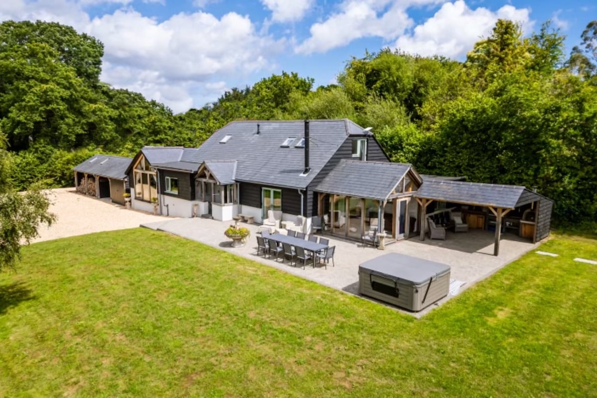 WALLISDOWN LODGE has something for everyone... pool table, arcade, climbing wall, darts, secret cave... While the cinema room is set up with Netflix, Disney+, Now Cinema/Entertainment, Amazon Prime etc. The garden has an amazing play space with a 2storey wendy house, swing, slide, trampoline & mud kitchen. While the kids play, adults relax in the hot tub! The drive can fit 8 cars with EV charging point powered by solar panels Prices include VAT so request an invoice if you can claim it back!