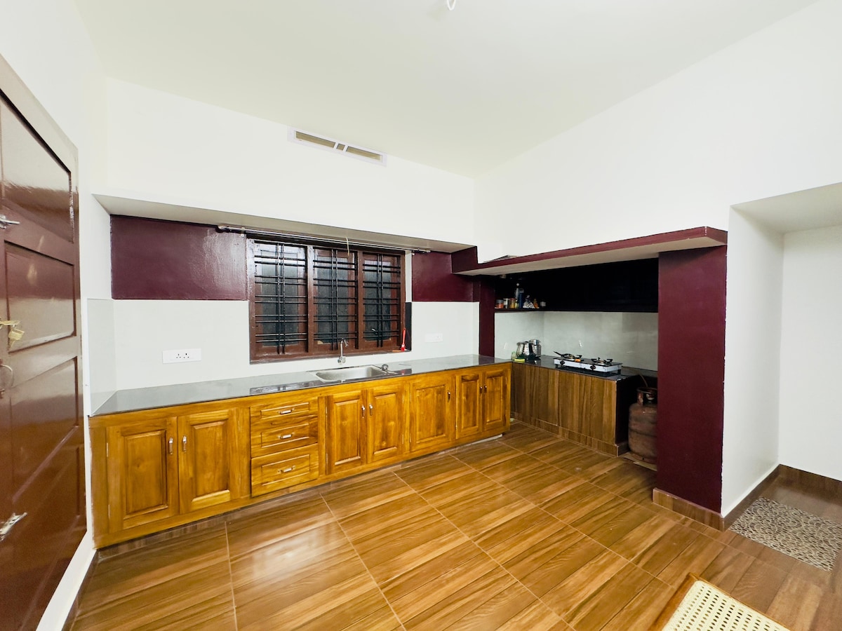 Cascada de Marmala: 9 min (3,5 km) a través de Teekoy - Mangalagiri Road Vagamon: 40 minutos (20,3 km) a través de Erattupetta - Vagamon Rd. 🔑 Llegada y salida • Llegada: a partir de las 12:00 p. m. • Salida: antes de las 9:00 a. m. ¡Te damos la bienvenida a tu hogar lejos de casa! Nuestro sereno refugio en el campo ofrece la mezcla perfecta de comodidad y encanto, con impresionantes vistas a las montañas. Relájate con toda la familia en este lugar tranquilo para hospedarte.