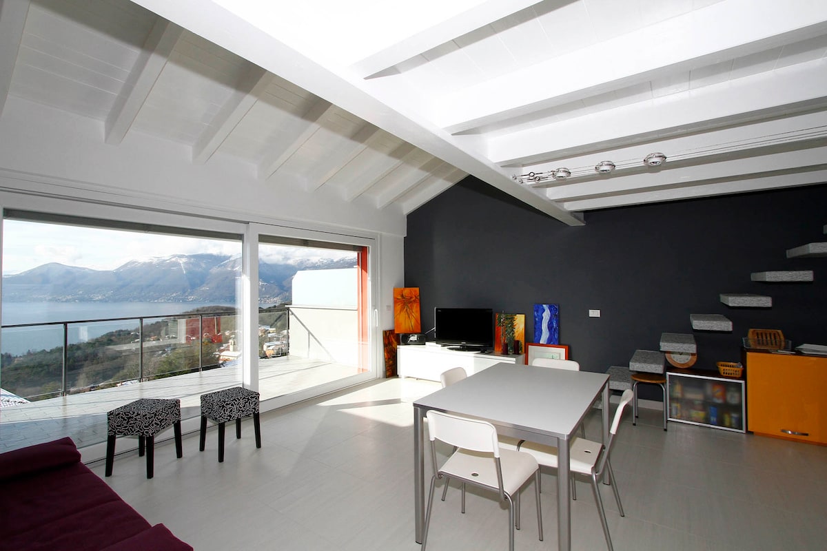 CASA PACHAMAMAS: apartamento independiente con terraza, jardín común y vistas impresionantes del lago Mayor cerca de la frontera con Suiza y a pocos minutos en coche de Cannero Riviera. Aparcamiento privado y terraza en la azotea.