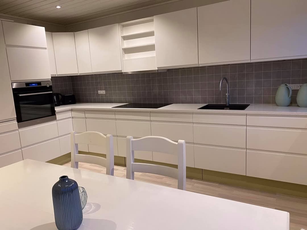 Our house is a detached one story house- therefor easily accessible and is placed in a nice and quiet area in "Tvøroyri", the lagest town on the island "Suðuroy". This beautiful island is the southernmost of the Faroe Islands. The surroundings are peaceful and mostly surrounded by beautiful mountains and fjords. The house has 3 bedrooms - 2 double beds, 2 single beds and 1 double sofabed. 2 bathrooms with shower. A livingroom, a kitchen, a scullery, an entrance and a balcony. WIFI and cableTV.