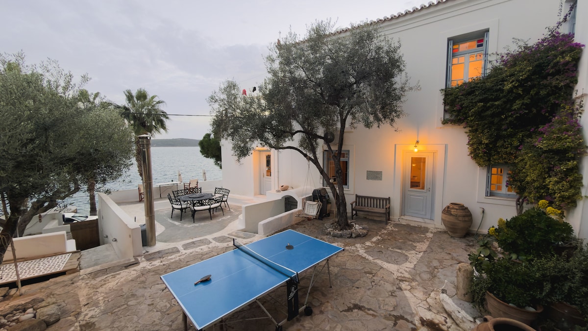Disfruta de esta espaciosa y luminosa casa, su gran terraza con unas vistas impresionantes del casco antiguo de la isla de Poros y el mar Egeo. Relájate junto a los árboles en la hamaca o el baño al aire libre mientras bebes una copa de vino o un café por la mañana viendo pasar los barcos. Nuestro espacio es perfecto para familiares y amigos. Gran lugar desde el que puedes explorar Poros y Peloponeso. Compartiremos contigo los mejores consejos sobre playas, 5 minutos a pie, restaurantes, cafeterías, actividades que puedes hacer o sitios que puedes visitar.