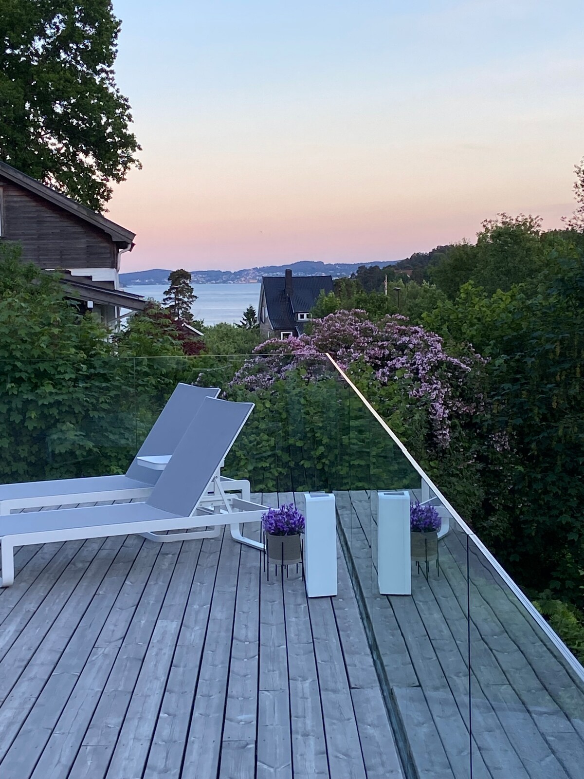 Relájate con toda la familia en esta tranquila residencia con vistas panorámicas del fiordo, a poca distancia de tiendas, restaurantes y del mar con una zona de baño. Hay un gran apartamento en 1.etch., su propia escalera y entrada, 91 metros cuadrados, 3 dormitorios, sala de estar con sofá cama y 3 sillas de cuero, horno de chimenea, bomba de calor. En el baño, el lavabo, el cubículo de ducha, la lavadora y la secadora, el lavabo y la secadora combinados, la cocina y la habitación pequeña al lado, tienen estacionamiento gratuito. Solo se permite fumar afuera.