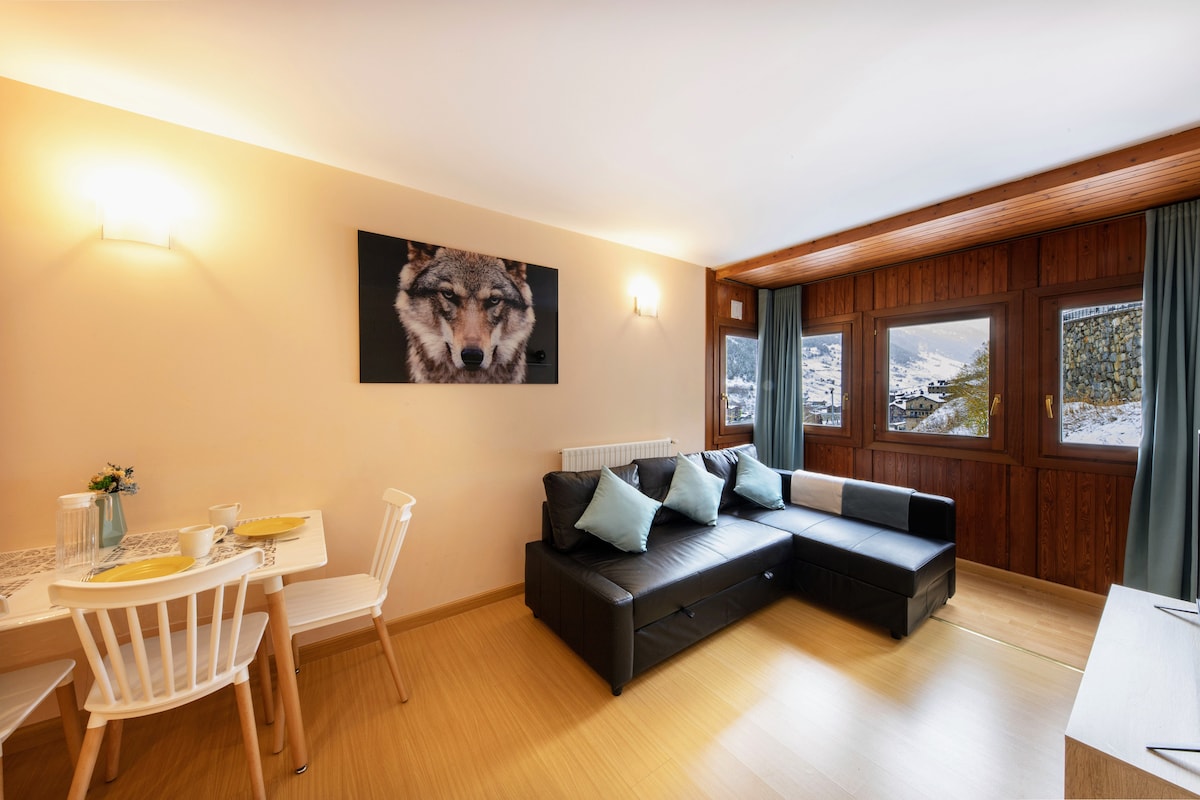 Este alojamiento único tiene personalidad propia. Apartamento para 6 personas. Con terraza. Situado a pie de pista de Sky. Con aparcamiento privado gratuito. Cuenta con todos los elementos para una estancia cómoda y hogareña. Tiene 3 habitaciones. Una de ellas equipada para teletrabajo. Cocina, baño, salón y terraza en la habitación principal. TV de 60 pulgadas, con diferentes plataformas de entretenimiento. Te sentirás como en una cabaña rodeado de naturaleza y nieve.