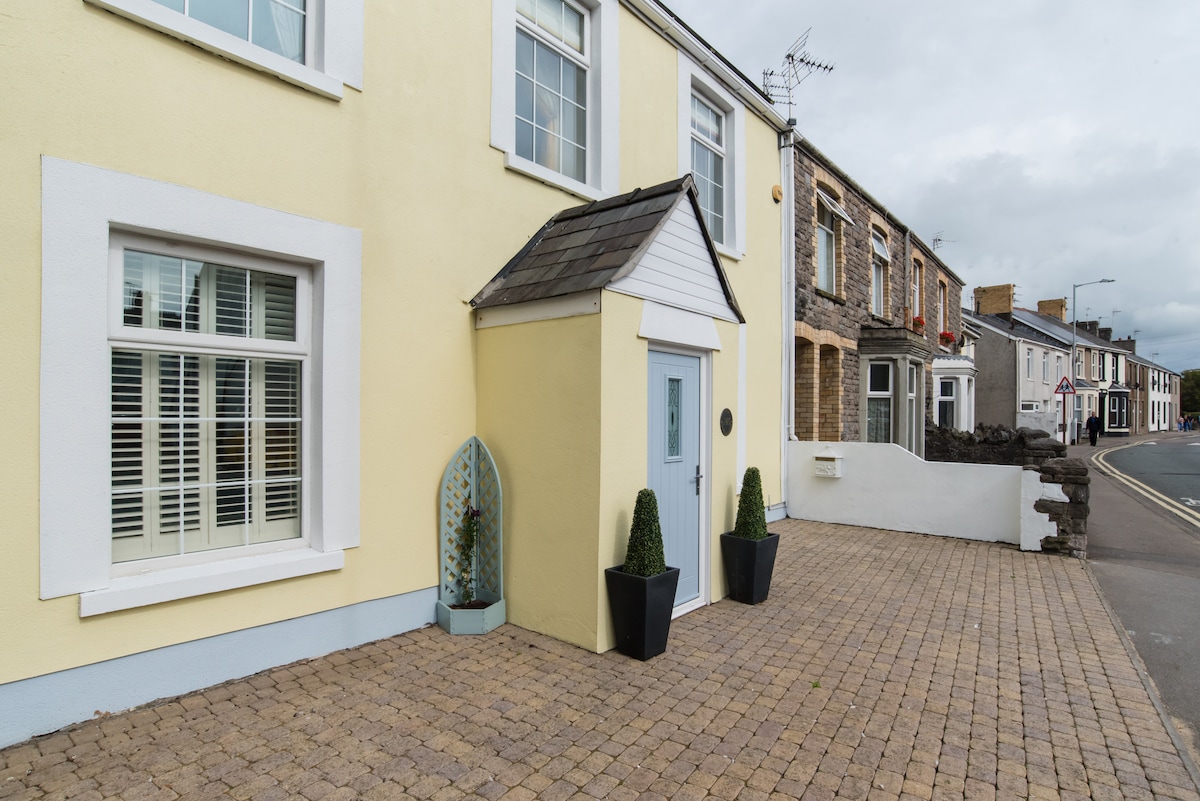 Casa rural galesa amarilla - Retiro costero con vistas al pueblo