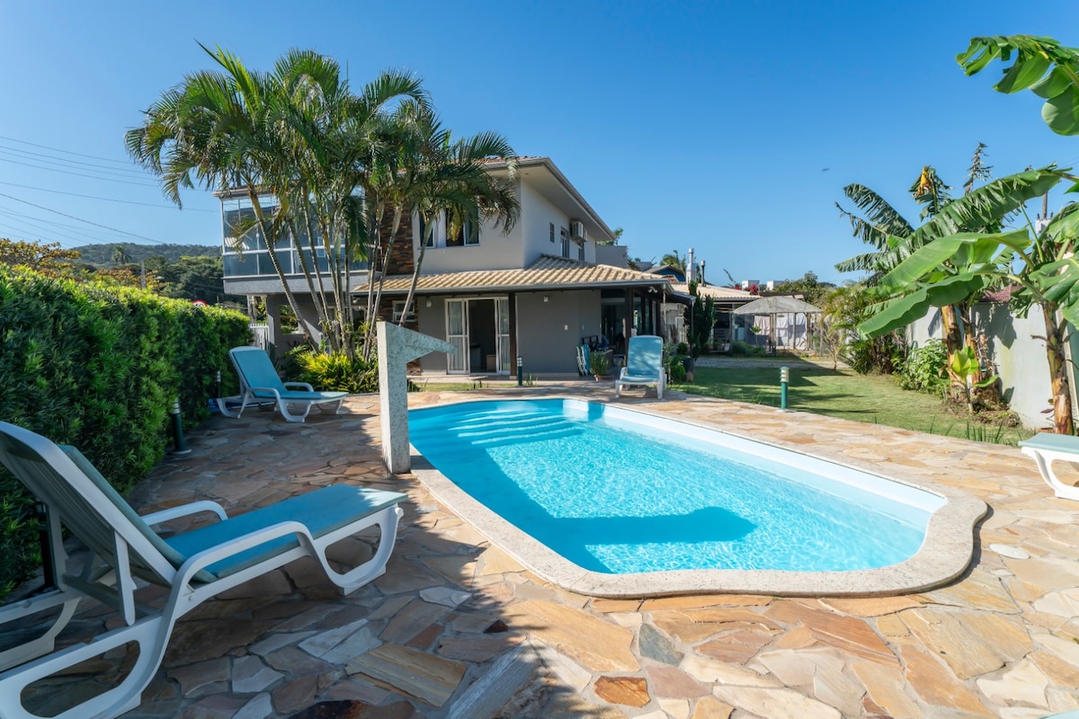 Casa de dos plantas, con 7 dormitorios, 6 de los cuales tienen aire acondicionado. Frente al mar, tiene una vista impresionante de la isla de Porto Belo, con piscina, barbacoa, galpón cubierto. ¡Excelente casa para unas vacaciones en familia! Cerca de las playas de Bombas, Bombinhas, Quatro Ilhas, Mariscal, etc. Playa tranquila y silenciosa, ¡casi privada! ¡Ven a conocer Porto Belo y disfruta de este paraíso! ¡Exclusivo para público familiar! ¡Límite máximo de 16 personas, incluidos niños!