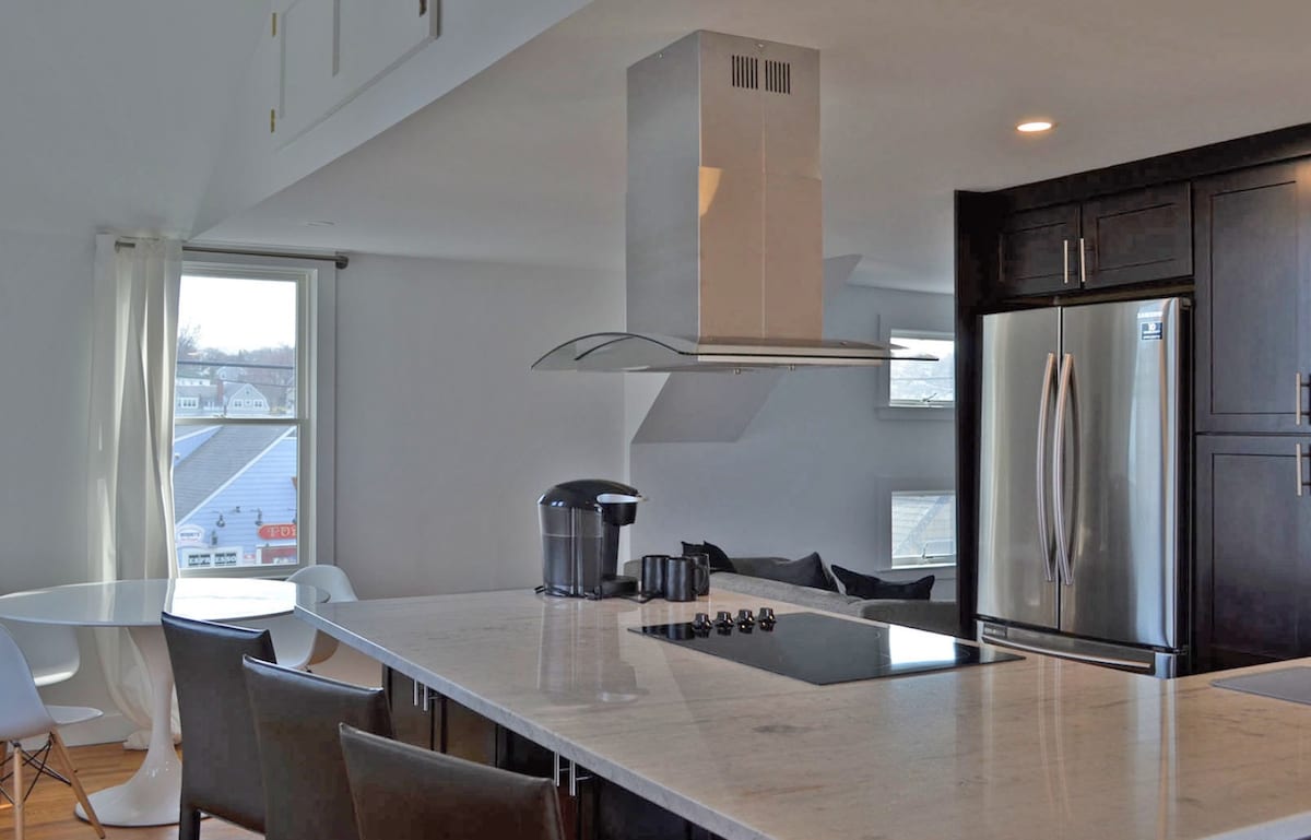 Este apartamento de estilo loft renovado está justo en el corazón del Puerto Viejo. Situado en la bulliciosa Exchange Street de Portland, el loft es fundamental para todo lo que la península tiene para ofrecer. El acceso por ascensor te llevará desde el apartamento hasta el vestíbulo seguro. Desde allí, las tiendas, los restaurantes, la vida nocturna y el paseo marítimo están a solo unos pasos de la puerta. Hay aparcamiento gratuito en la calle para un coche a unas manzanas de distancia o un práctico garaje de pago se encuentra junto al edificio.
