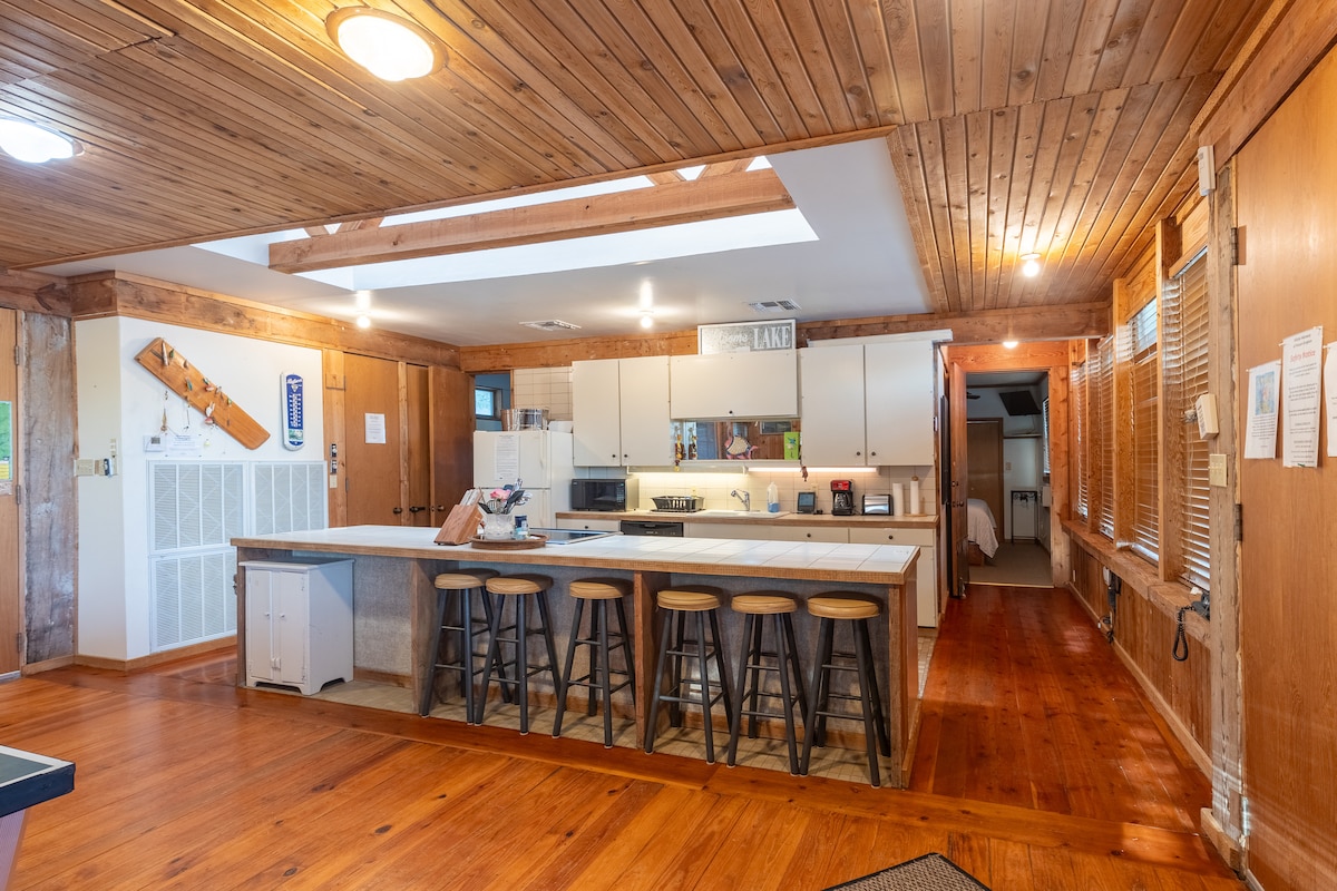 Esta casa de 2 dormitorios y 2 baños en Sam's Place ofrece todas las comodidades de casa. El dormitorio principal tiene un baño privado y la habitación con literas tiene capacidad para 9 personas, perfecta para familias o grupos. Con una acogedora sala de estar, cocina completa y cuarto de barro, es ideal para una estadía relajante. También disfrutarás de servicios compartidos como comedor al aire libre, parrillas, chimenea y The Storehouse para artículos básicos. Además, hay un muelle de aguas profundas, canoas/kayak y una ducha al aire libre después de tus aventuras en el lago.